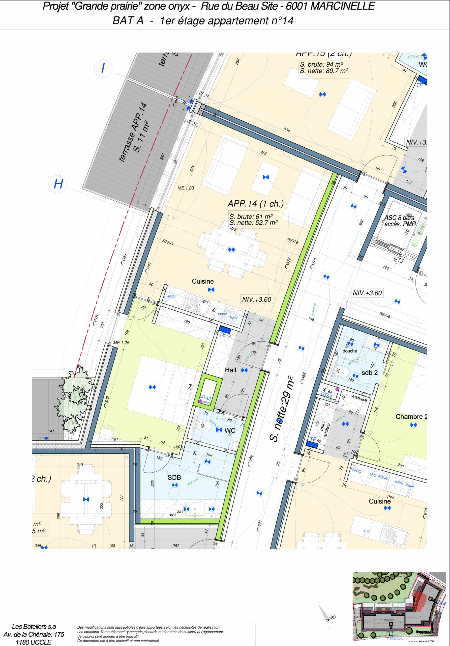 Appartement 14 TypeAppartement Lieu Onyx Statut Option Niveau Etage 1 Area : 59 Equipements 1 Chambre 2 Chambre Terasse